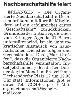: Dechsendorfer Nachbarschaftshilfe feiert Jubiläum